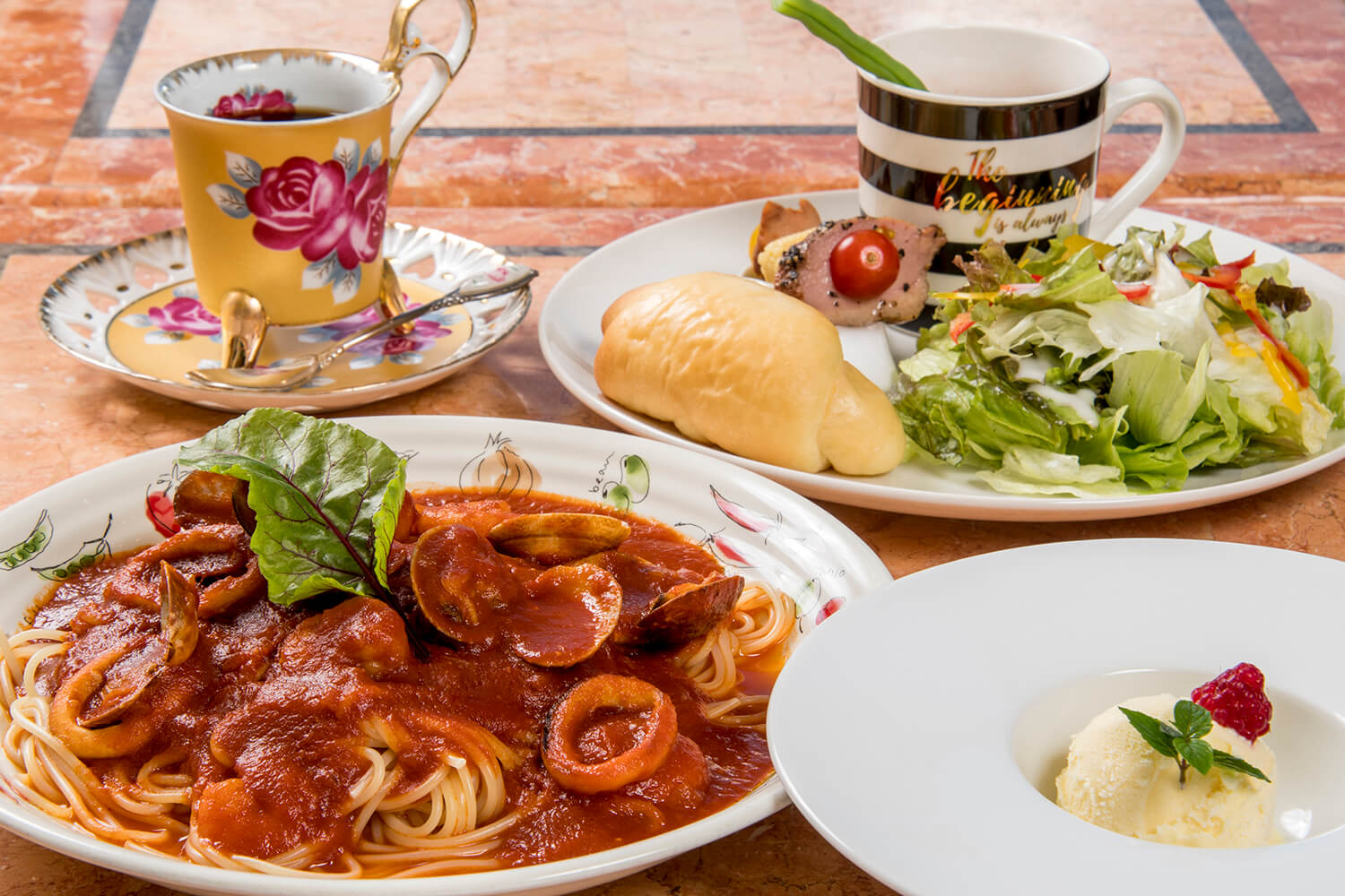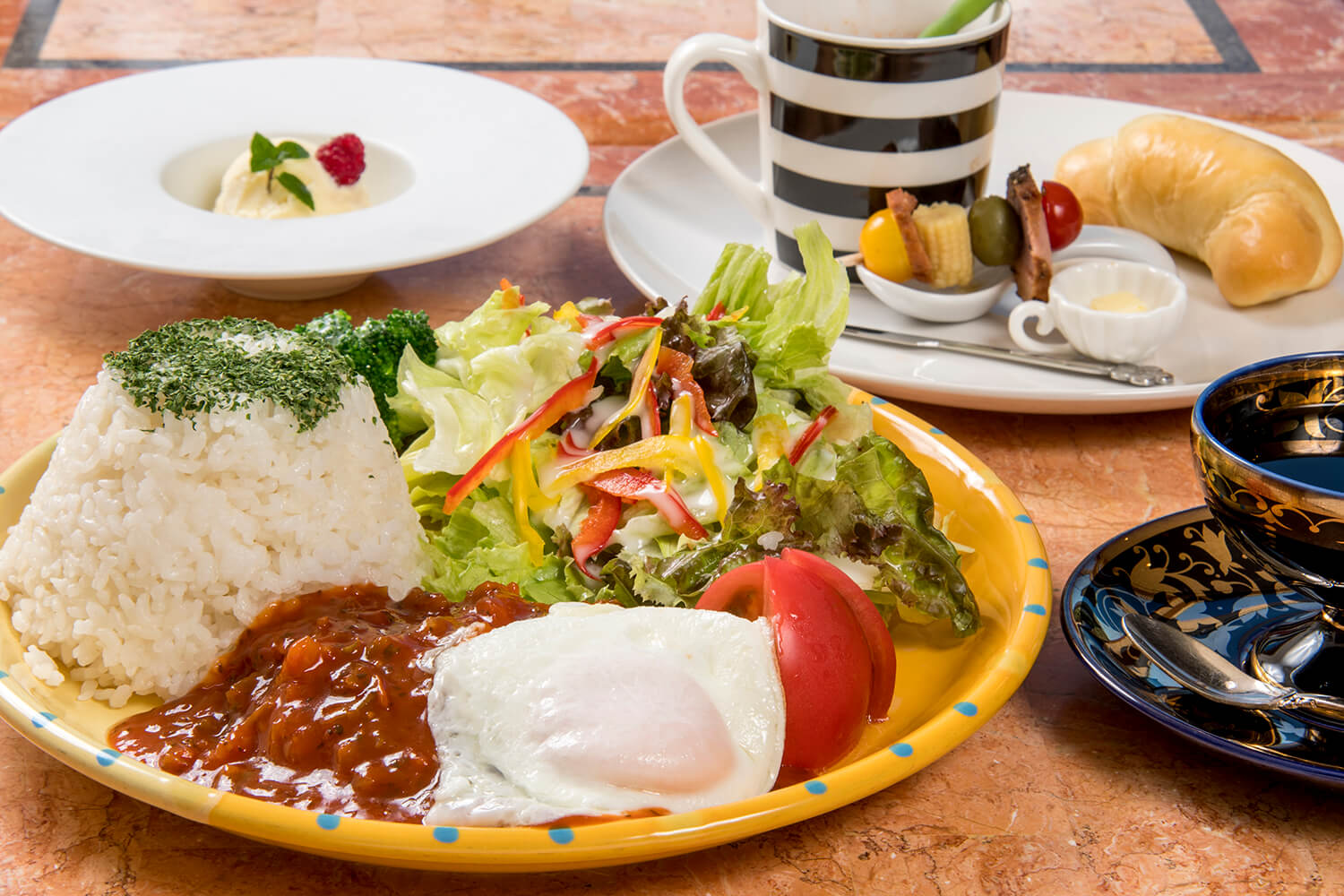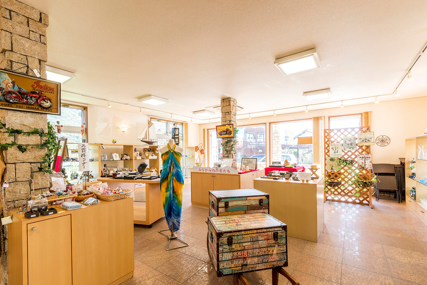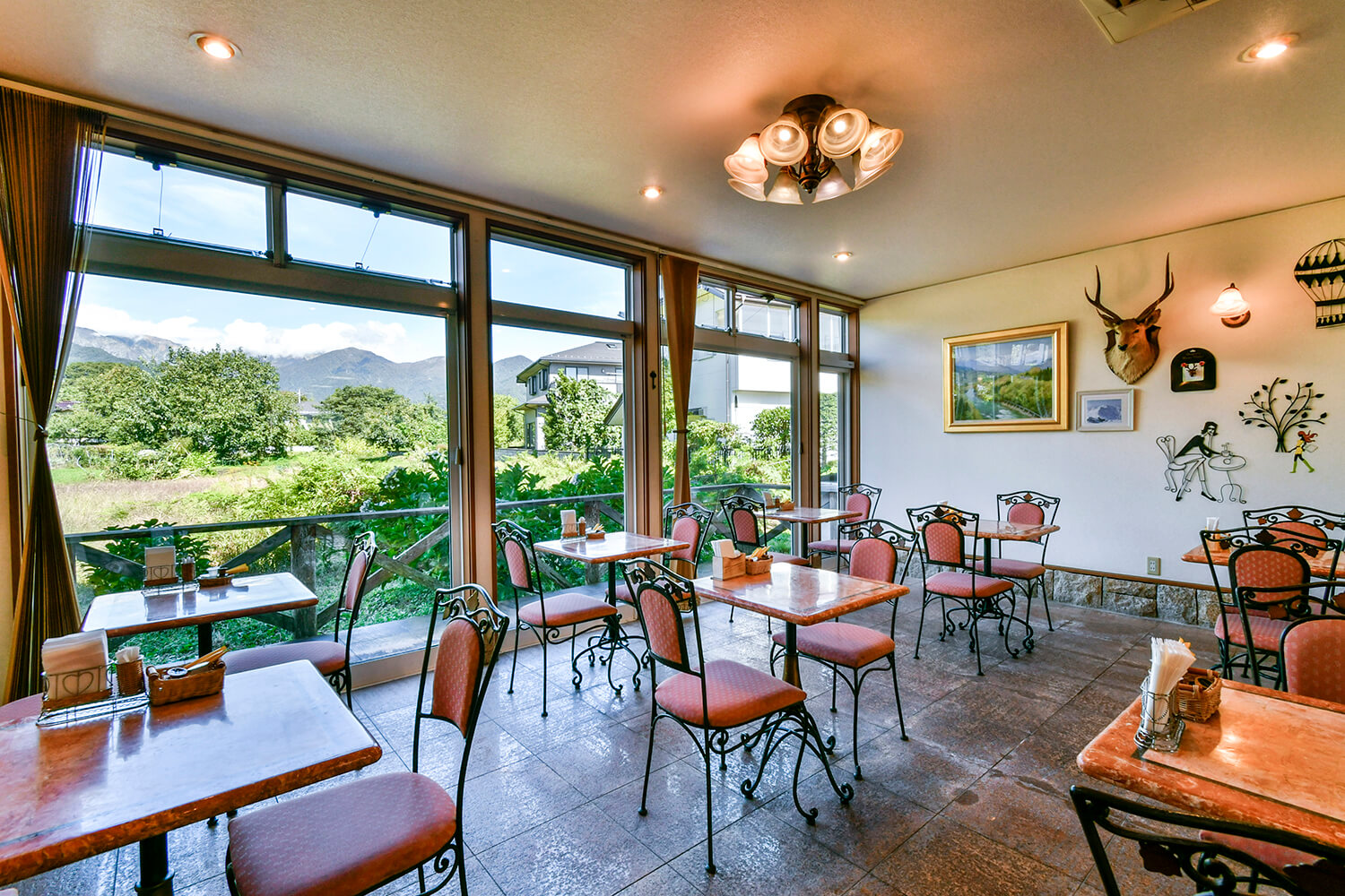 大きめに設置した窓の前に広がる谷川岳を独り占めできる、眺望抜群のイタリアン&ファンシーショップ。谷川岳側にレストラン、道路側にショップがあります。「趣味が高じて」と照れ臭そうに話すベテランオーナーシェフが提供するランチは、「パスタ」「ハッシュドビーフ」(各1800円)、「ハンバーグ(デミグラスソースorサルサソース)」(各1900円)の4種類。どれも新鮮な野菜をふんだんに使ったサラダ、おしゃれなピンチョス、スープにパンにドリンクやデザートまでつくという大満足のボリューム。もうひとつのごちそうである景観も存分に楽しみながら、ゆったりくつろげます。雪深くなる冬季以外のテラス席は、ワンちゃんの同伴OK。訪れた誰もがみんな優しい気分になれる、とっておきです。